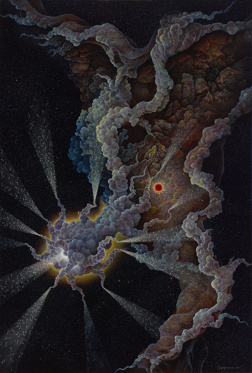 La palabra Cosmogonía tiene una doble acepción: define las teorías científicas acerca del origen y la evolución del Universo, pero también se refiere a los relatos